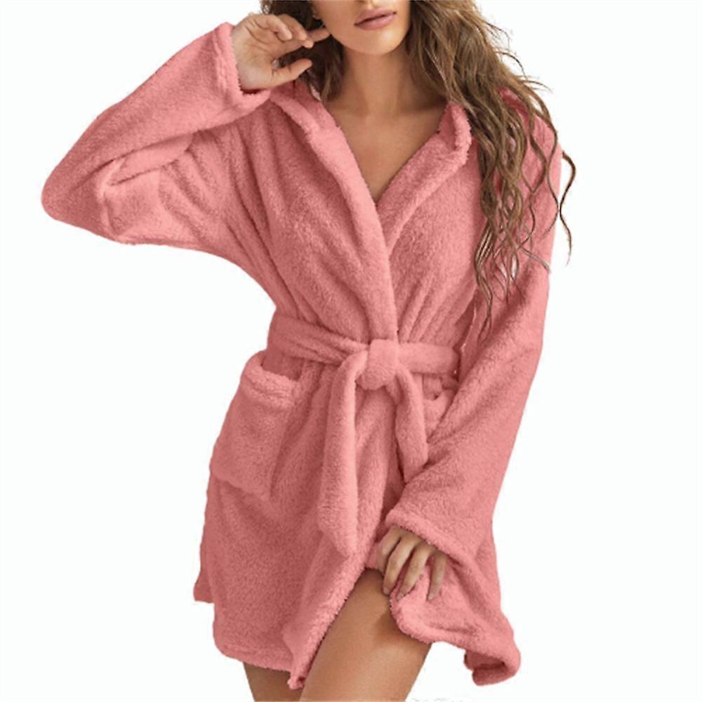 Winter And Autumn Fuzzy Bathrobe Women Coral Fleece Homewear Hooded