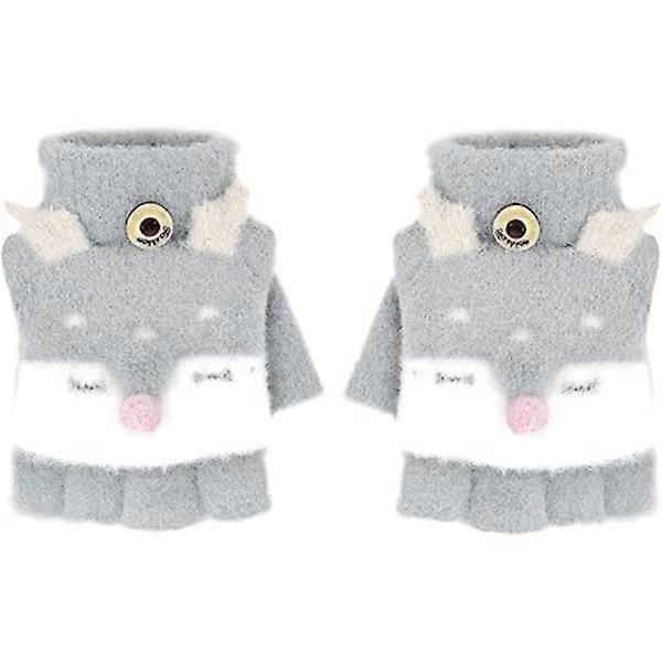 Kids Winter Gloves, Warm Fingerless Convertible Flip Gloves, Knitted Writing Cycling Gloves for Running, Half Finger Flip Gloves Suitable for Boys