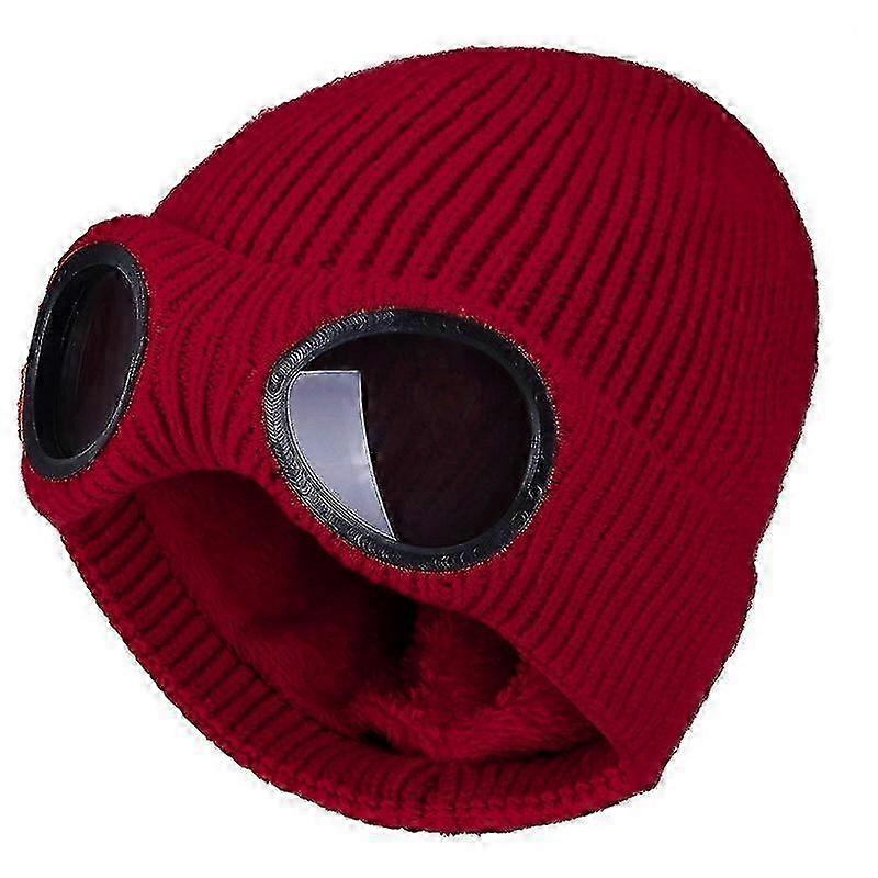 Winter Beanie Hat with Safety Goggles, Knitted Fleece Warm Cap for Adults - Multifunctional Unisex Cold Weather Accessory