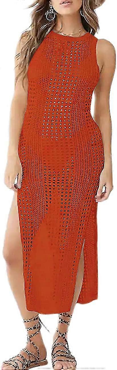 Crochet Cover Ups For Women Hollow Out Sleeveless Bikini Swimsuit Swimwear Side Split Long