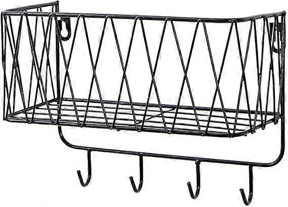 Wall Rack Floating Shelf with Hooks and Towel