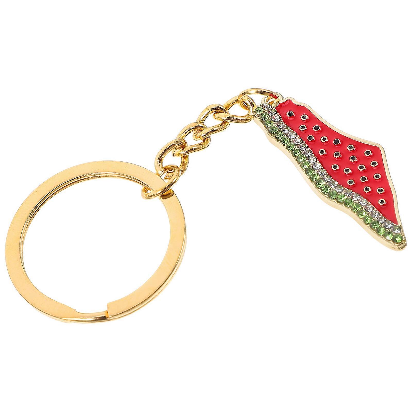 Elevate your accessory game with the Watermelon Keychain, a good blend of fashion and function. The intricate design, featuring sparkling rhinestones, captures attention and adds a pop of color to your belongings. Whether attached to keys, bags, or , this keychain pendant enhances your style quotient effortlessly. Features - Color: Golden -Material:Zinc alloy - Size: 9.50X3.00X0.20cm/3.73X1.18X0.08in -Small and portable: This keyring is lightweight and small, easy to carry, show personal charm anytime. -The pendant accessories are made of reliable materials, durable and practical. -The design with realistic watermelon shape is fashionable and . Ideal for your bag hanging charm. - Eye-catching and chic appearance, this keychain charm can attract people's attention. - Easy to use, and it is convenient and your bag, make your bag and purse looks more lovely and eye-catching. Package list: 1 x watermelon keychain charm