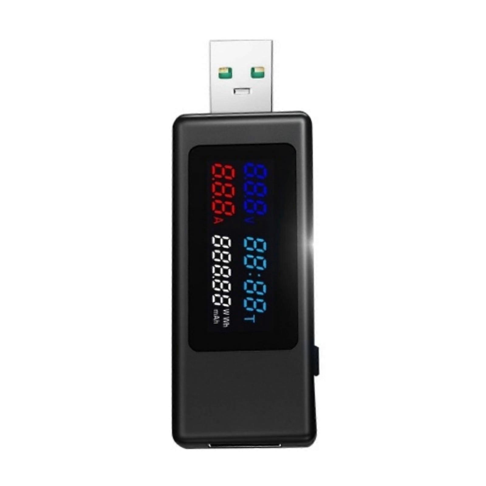 WJSXC Power Meter Tester 6 In 1 Current Voltage Timing Power Capacity Power Tester with Power-off Memory Function Black