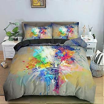 x1621 Lakan / Elektrisk glödlampa sängkläder Set Akvarell tryckt påslakan Set för sovrum inredning Twin Size Sängkläder 3-delat sängkläder (1 Täcke C