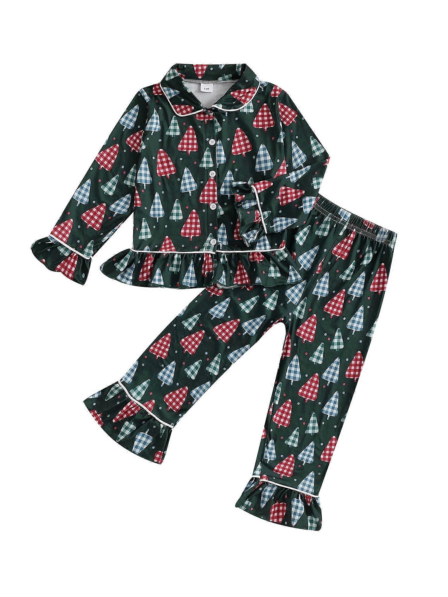 Toddler Girls Christmas Pajamas Set Tree/Candy Cane/Bow Print Shirts Tops Long Pants 2 Pieces Lounge Suit Sleepwear Size (cm) 12-18M Tops Length: 34 Bust: 53 Sleeve: 25.5 Pants Length: 44 Waist: 40 Advised Age: 12-18 Months 18-24M Tops Length: 36 Bust: 56 Sleeve: 28 Pants Length: 48 Waist: 42 Advised Age: 18-24 Months 2-3Y Tops Length: 38 Bust: 59 Sleeve: 30.5 Pants Length: 53 Waist: 44 Advised Age: 2-3 Years 3-4Y Tops Length: 40 Bust: 62 Sleeve: 33 Pants Length: 58 Waist: 46 Advised Age: 3-4 Years 4-5Y Tops Length: 42 Bust: 65 Sleeve: 35.5 Pants Length: 63 Waist: 48 Advised Age: 4-5 Years Size (inch) 12-18M Tops Length: 13.39 Bust: 20.87 Sleeve: 10.04 Pants Length: 17.32 Waist: 15.75 Advised Age: 12-18 Months 18-24M Tops Length: 14.17 Bust: 22.05 Sleeve: 11.02 Pants Length: 18.9 Waist: 16.54 Advised Age: 18-24 Months 2-3Y Tops Length: 14.96 Bust: 23.23 Sleeve: 12.01 Pants Length: 20.87 Waist: 17.32 Advised Age: 2-3 Years 3-4Y Tops Length: 15.75 Bust: 24.41 Sleeve: 12.99 Pants Length: 22.83 Waist: 18.11 Advised Age: 3-4 Years 4-5Y Tops Length: 16.54 Bust: 25.59 Sleeve: 13.98 Pants Length: 24.8 Waist: 18.9 Advised Age: 4-5 Years Specification: Name: Toddler Girls Christmas Pajamas Gender: Toddler Girls Material: 100% Polyester Sleeve Length: Long Sleeve Pattern: Christmas Tree/Candy Cane/Bow Print Package Contents 1x Tops + 1x Pants Friendly Tips: 1. Please kindly allow a 2-3% difference according to manual measurement. 2. Please check the measurement chart carefully before you buy the item. (1 inch = 2.54 cm) 3. Please note that a slight color difference should be acceptable due to the light and screen. Thanks. Promise If the product has any quality problems, please tell us, we will help you solve the problem as quickly as possible. MATERIAL: Kids Christmas pajama set is made of 100% polyester with some stretch touch, silky-smooth, very softly and comfy; Lightweight and skin-friendly material care for children girls DESIGN: The pjs for girls comes with Christmas tree/candy cane/bow print; Tops uses doll collar, flare sleeve, long sleeve, button-down design; Elastic waist long pants, making your kids feel relax OCCASIONS: The children Christmas sleepwear sets is perfect for sleeping, bathing and lounging indoor and outdoor; Fashion long sleeve sleepwear outfits for girls to make bedtime extra easy PERFECT PRESENT: Nightwear for kids is an awesome present for your little big girls loungewear dressing party, school pajamas festival, birthday party, Halloween, Thanksgiving, Christmas, New Year or other festival KID GIRLS CHRISTMAS PAJAMAS: You will receive a long sleeve lounge tops and a long pajamas pants; Great for your lovely kids to spend every pleasant evening