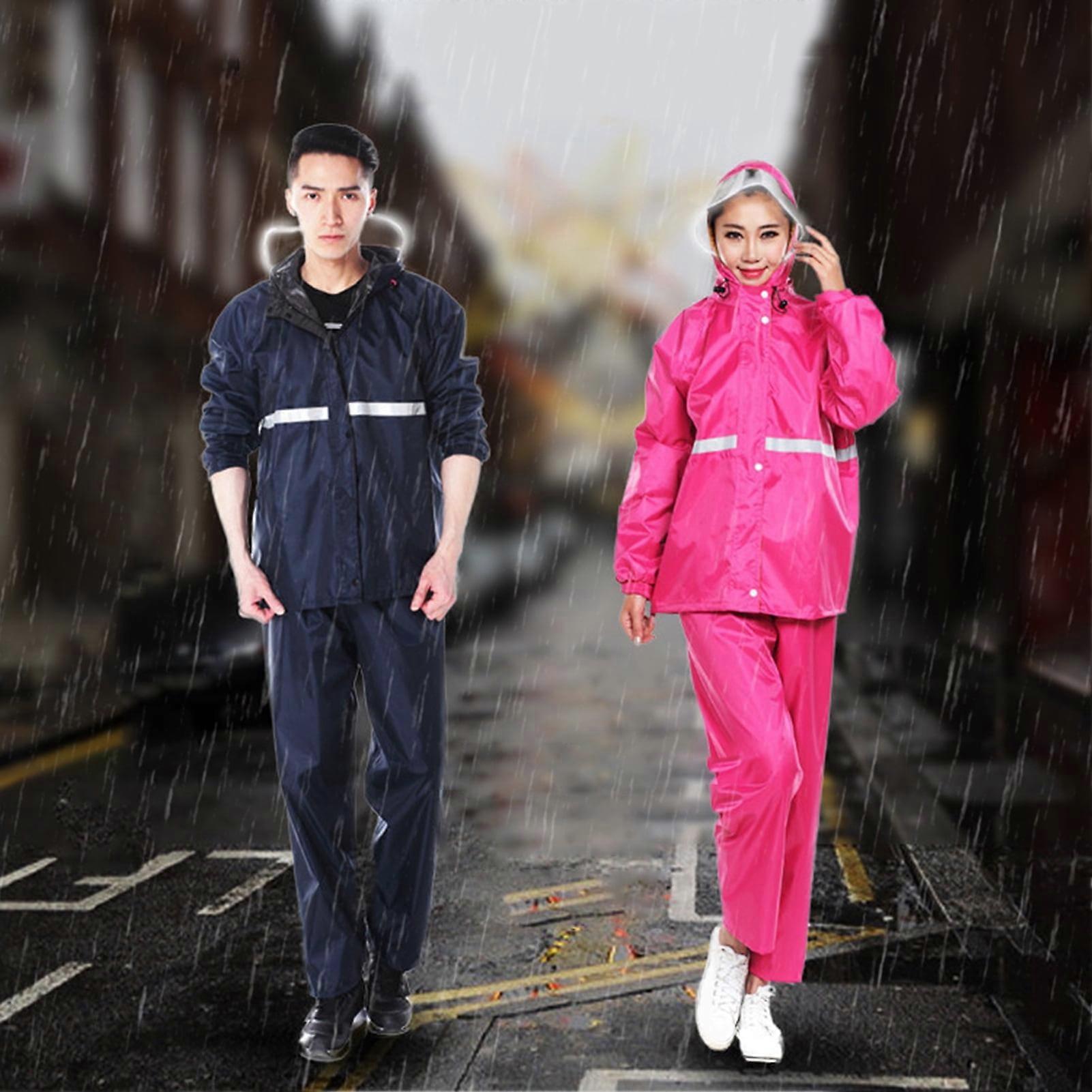 Yesbay 1 Set Adults Rain Suit Waterproof Breathable High Visibility Reflective Strip Outdoor Rain Jacket Trouser Men Women Hooded Rainwear Rain Gear