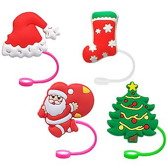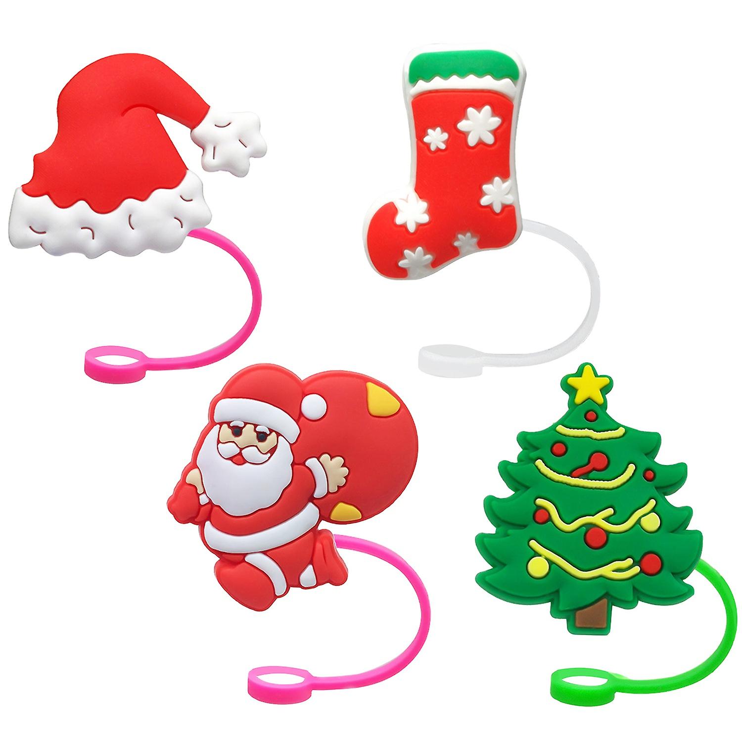 ZHOUBA 4Pcs Christmas Straw Covers with Handle Creative Shape Unique Design Tumbler Straw Toppers